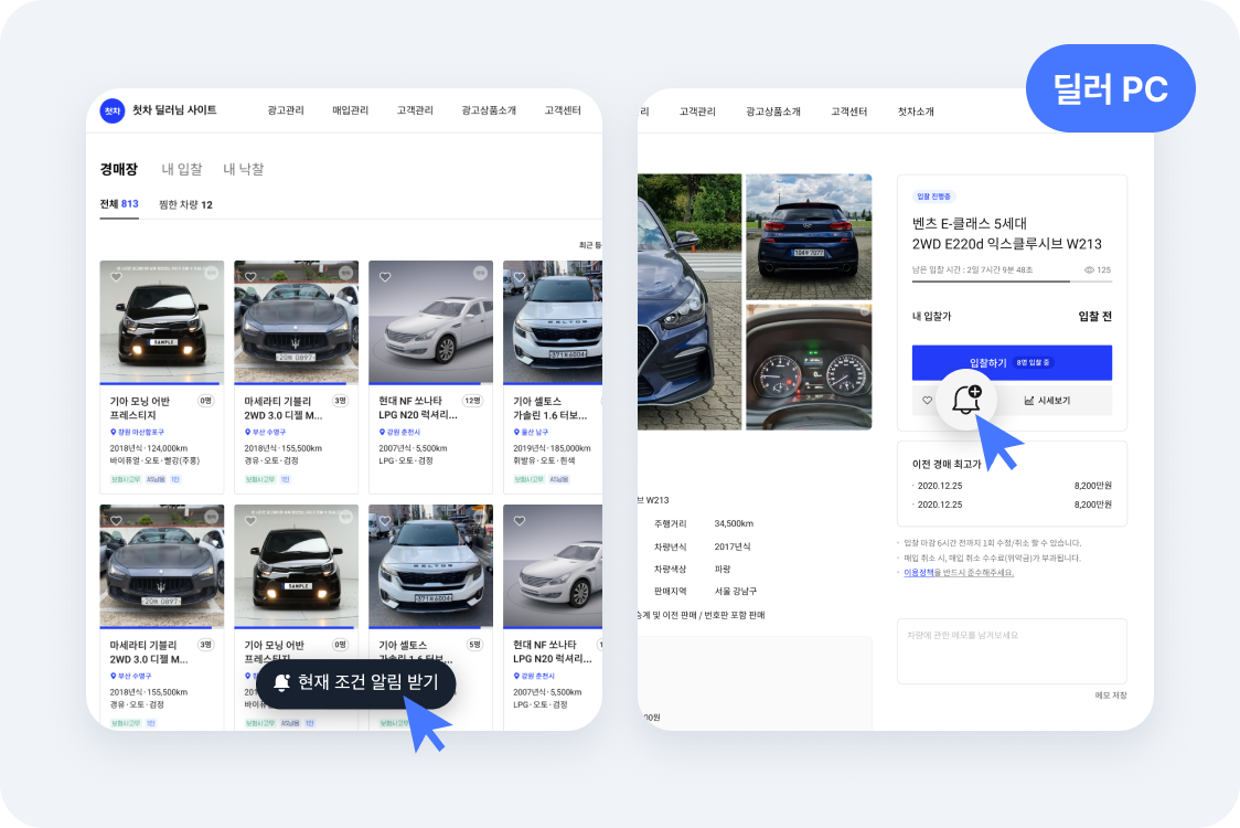 딜러님이 원하는 차량을 놓치지 않고 바로 입찰하실 수 있도록 '경매장 입고 알림' 기능을 새롭게 추가했습니다.